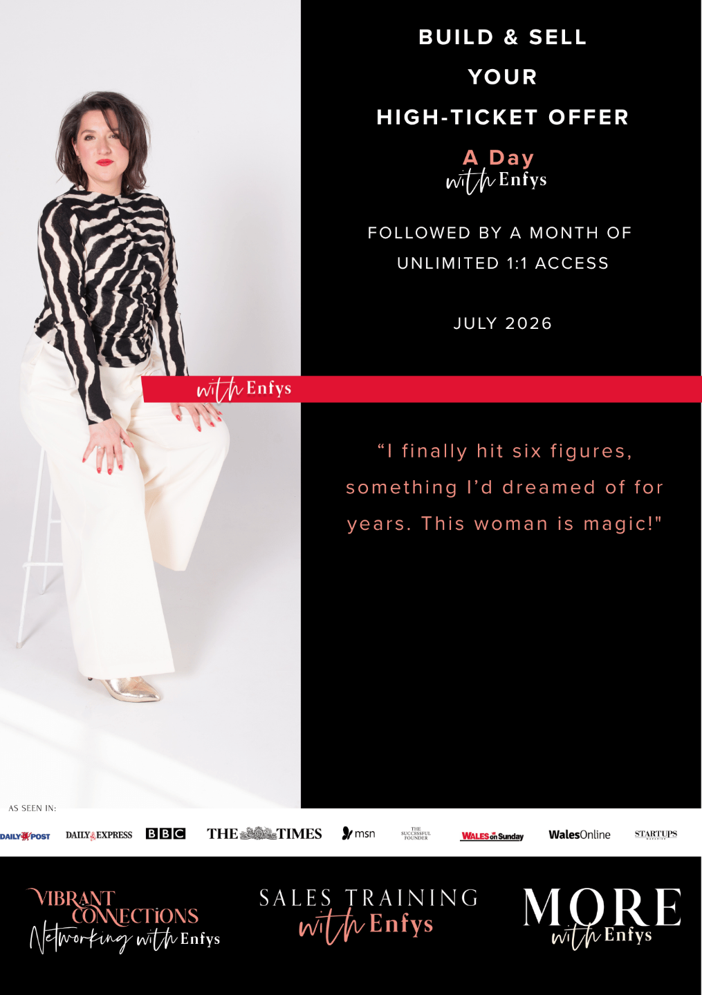 My name is Enfys (Welsh for rainbow) and I help my fabulous clients get phenomenal results when it comes to making sales.